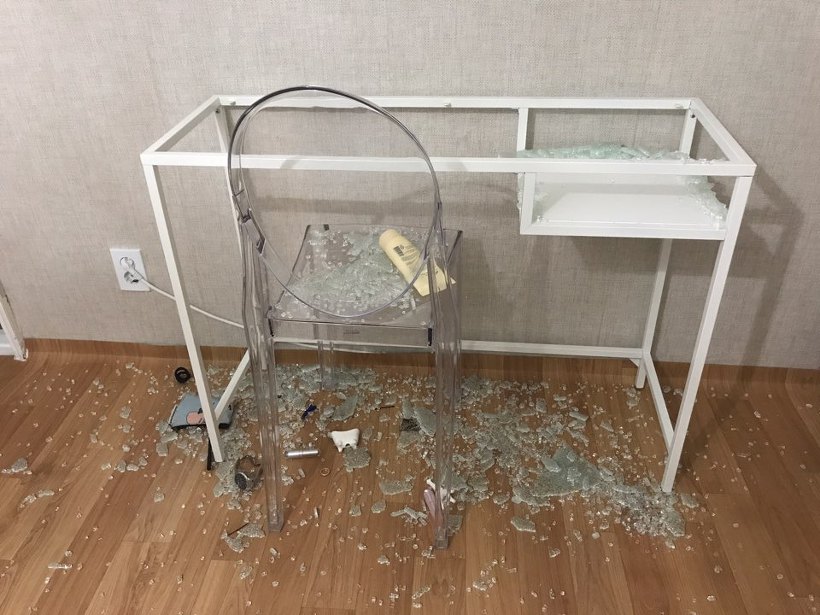 이케아에서 산 노트북 책상 VITTSJÖ 빗셰가 자고 있는데 와장창 깨져버렸습니다...